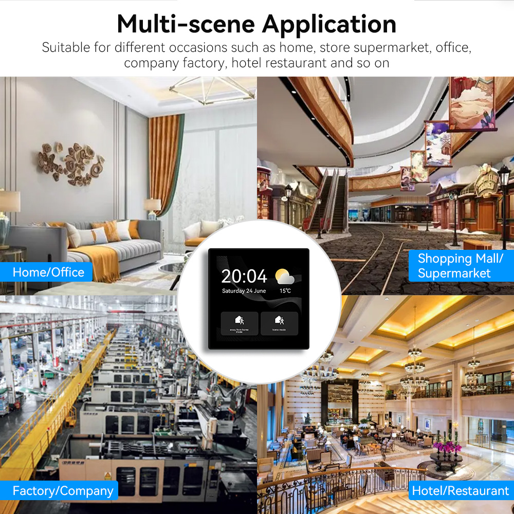 • 🖥️ It is an In-Wall Touch Screen (typically 4-inch HD LCD with 480 times 480 resolution) that fits into a standard wall box (e.g., EU or 86-type).